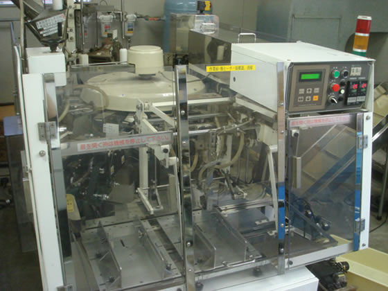 前の機械で計量が行われるのと同時に、この機械で包装工程が次のように行われます。